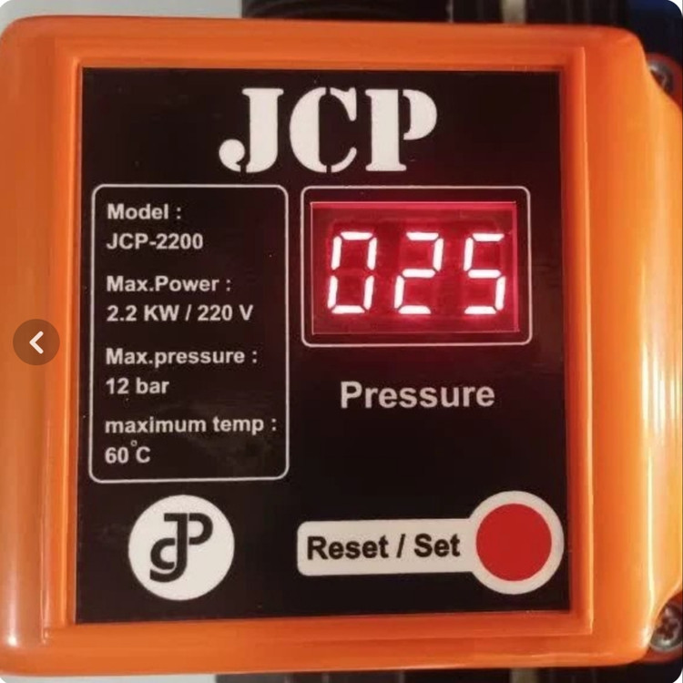 ست کنترل پمپ آب JCP با طراحی بومی و جدید مجهز به حسگر دقیق فشار و دما تا ۶۵ درجه و نمایشگر دیجیتال . این دستگاه بدون دیافراگم و با شیر یکطرفه برنجی ساخته شده و تا ۱۲ بار فشار را تحمل می کند و مناسب برای پمپ های ۰.۵ تا ۳ اسب بخار است دارای رله ۳۵ آمپری دو جرقه گیر VDR و بدنه مقاوم پلی آمید الیاف دار می باشد . ارسال سرتاسر این ۳ روزه